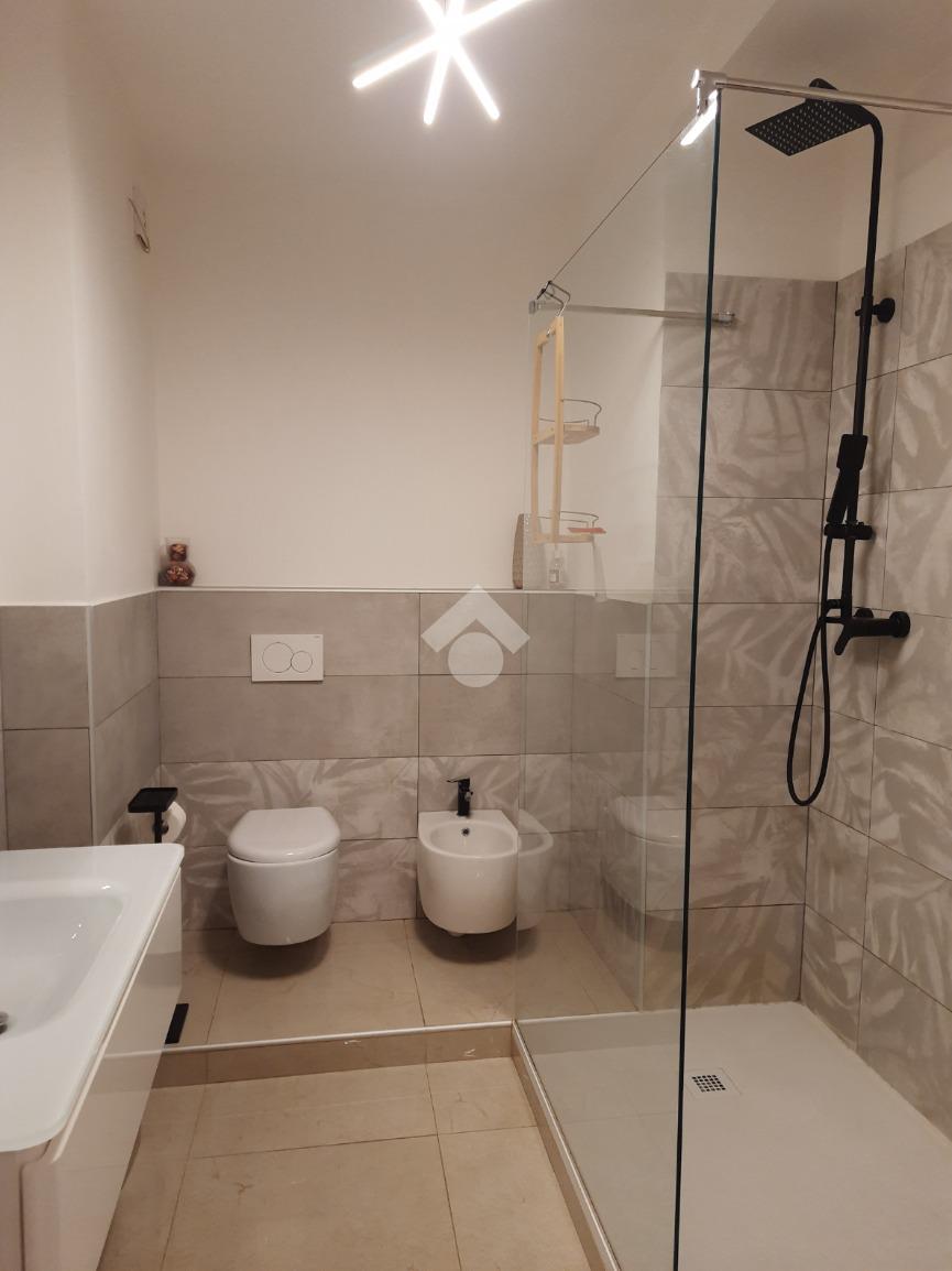 In zona centrale e servita proponiamo in vendita un appartamento completamente ristrutturato composto da una comoda zona giorno con cucina a vista, due camere da letto, un bagno completo cieco, un secondo bagno di servizio cieco e un ripostiglio. L'immobile è stato oggetto di una ristrutturazione totale negli ultimi anni e si presenta con finiture di alta qualità e impianti certificati. Il riscaldamento è autonomo con caldaia installata nel 2024. Porta blindata, climatizzatore con doppio split. Possibilità di acquisto di una comoda autorimessa di 60 metri quadri che può ospitare tre autovetture al prezzo di 159000 euro. Il box oltre all'accesso auto ha anche l'accesso pedonale che porta direttamente nel condominio. Ottimo anche come investimento per utilizzo B&B.